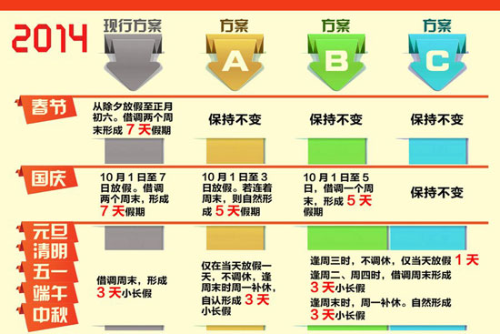 假日办征求对假期意见,三种方案拿出来征求民意,用哪个都会招来吐沫。其实这也不是众口难调,而是管得太宽。一年放多少假,怎么个放法,把公务员给规定好了就结了。至于一般群众想怎么休息,让大家自行决定不好吗?有那个绞尽脑汁琢磨挪日子的精力,真不如好好想想怎么落实劳动法,让大家能踏实休息,踏实带薪休假,踏实每周40小时工作制。瞧瞧古今中外,哪个国家、哪个朝代,有为放假这么嘬牙花子的么?